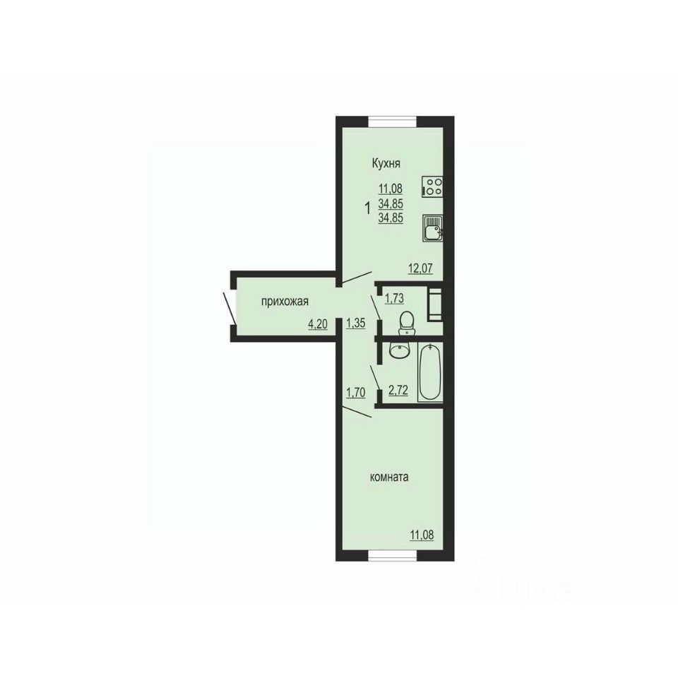 Общая площадь34,85 м2