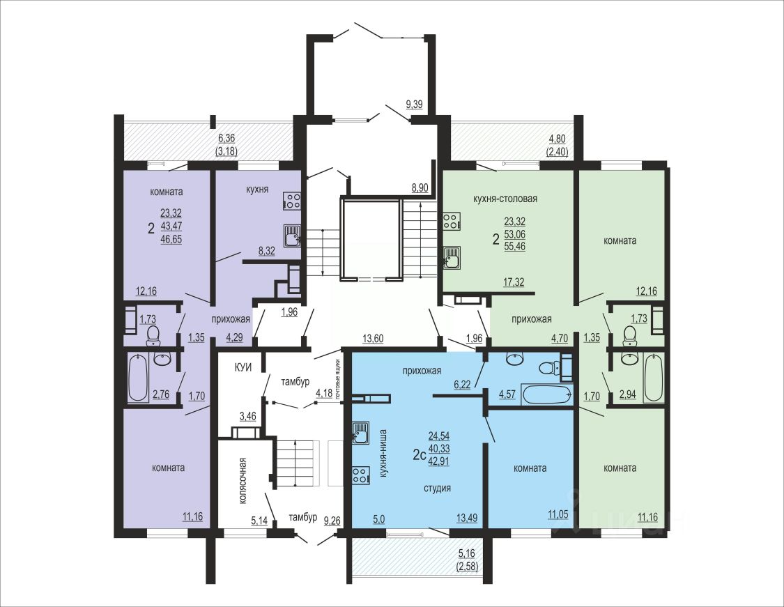 Общая площадь55,46 м2
