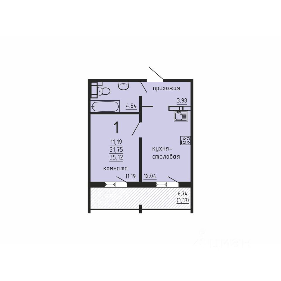 Общая площадь35,12 м2