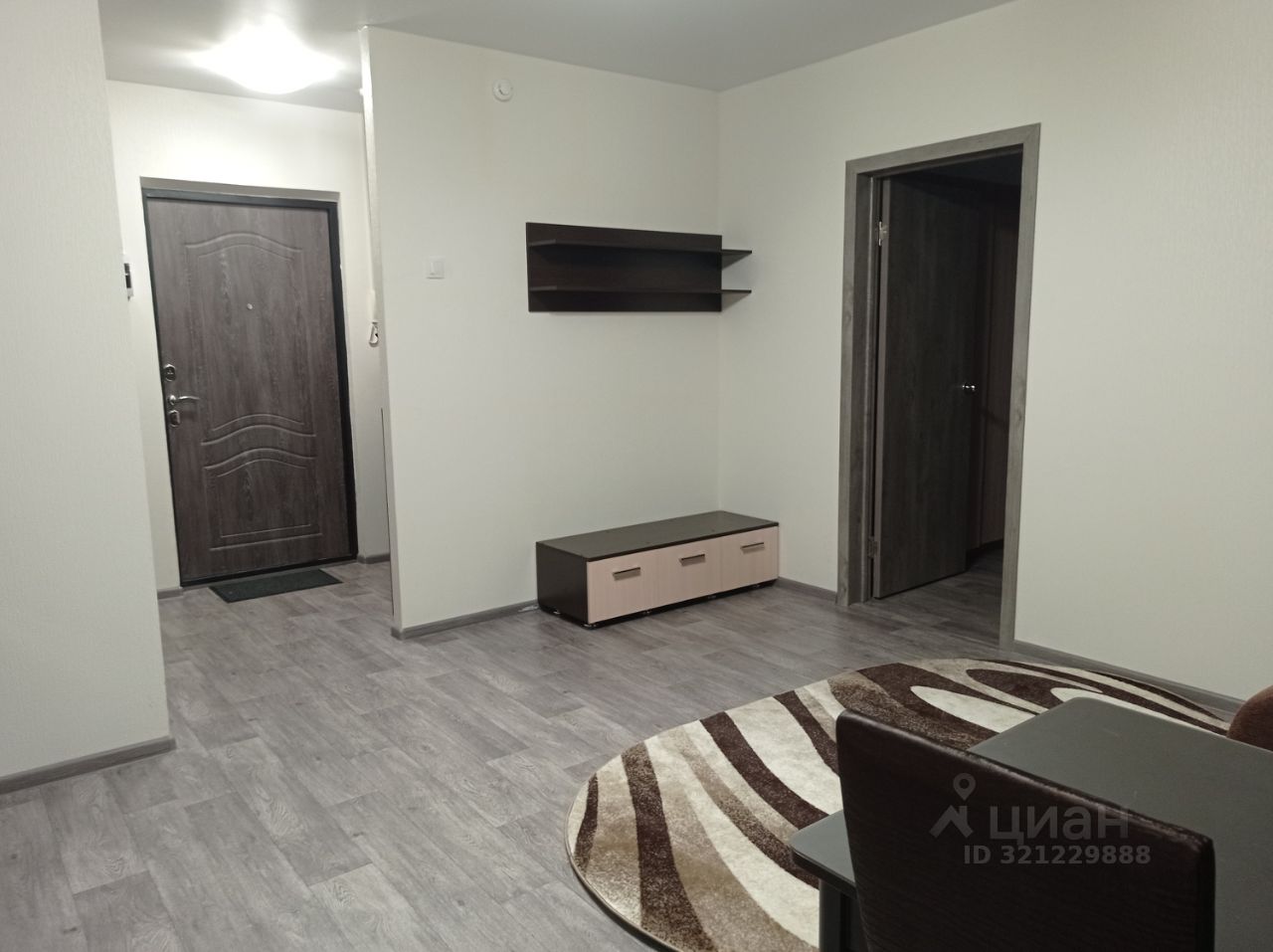 Квартира оборудована необходимой мебелью и бытовой техникой. Спальные места: двуспальная кровать в спальне + односпальный диван в зале. Студия: односпальный раскладывающийся диван, широкая тумба под телезизор + полка над ней, обеденный стол с 2 стульями, большой холодильник, эл.плита с вытяжкой, кухонный гарнитур, микроволновка, электрочайник, гладильная доска и утюг. Спальня: двуспальная кровать с двумя тумбочками, платяной шкаф, компьютерный стол со стулом и полка над ним. Коридор: платяной шкаф, прихожая с зеркалом и ящиком для обуви, шкаф-обувница, стиральная машина. Санузел совмещенный, оснащённый электрическим полотенцесушителем.