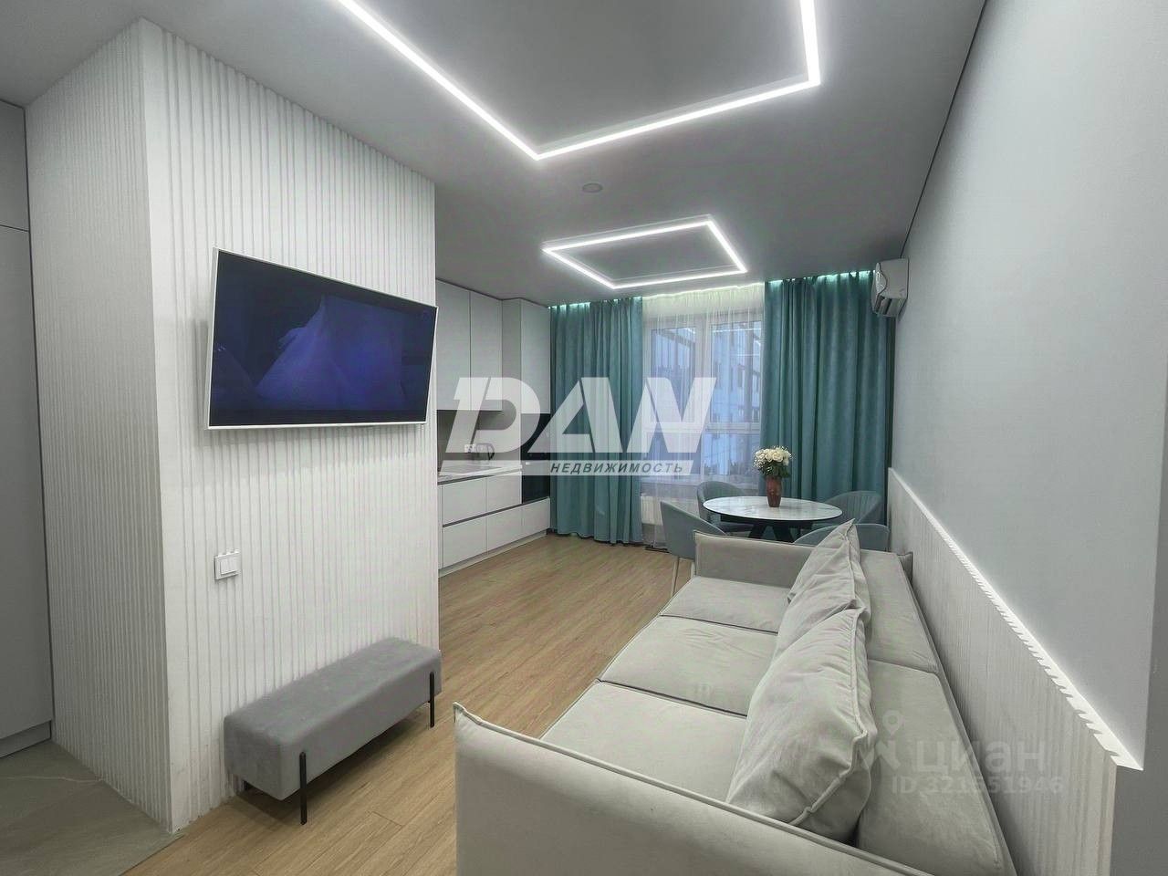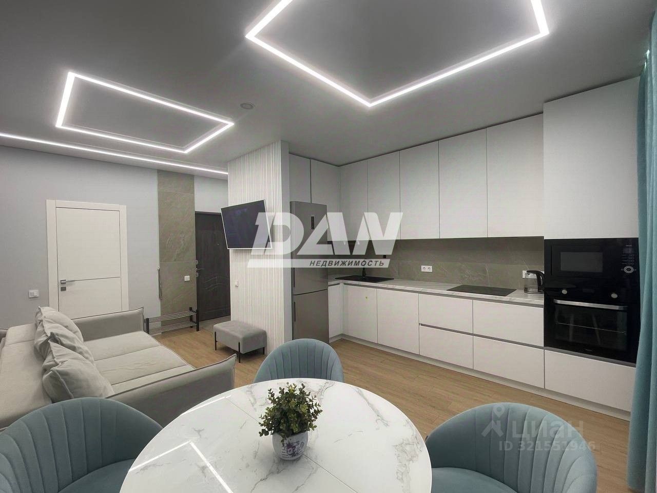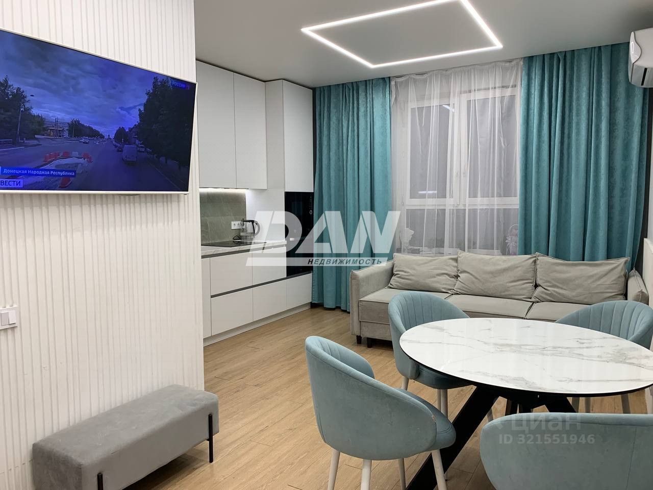 В кухне-гостиной новый кухонный гарнитур со встроенной бытовой техникой, есть кондиционер. Ремонт выполнен в 2024 году по проекту дизайнера, по принципам Васту, для гармоничного проживания всей семьи.