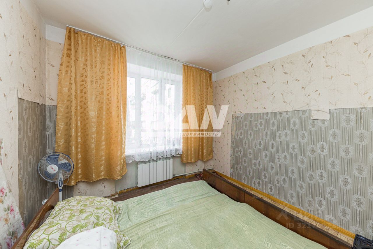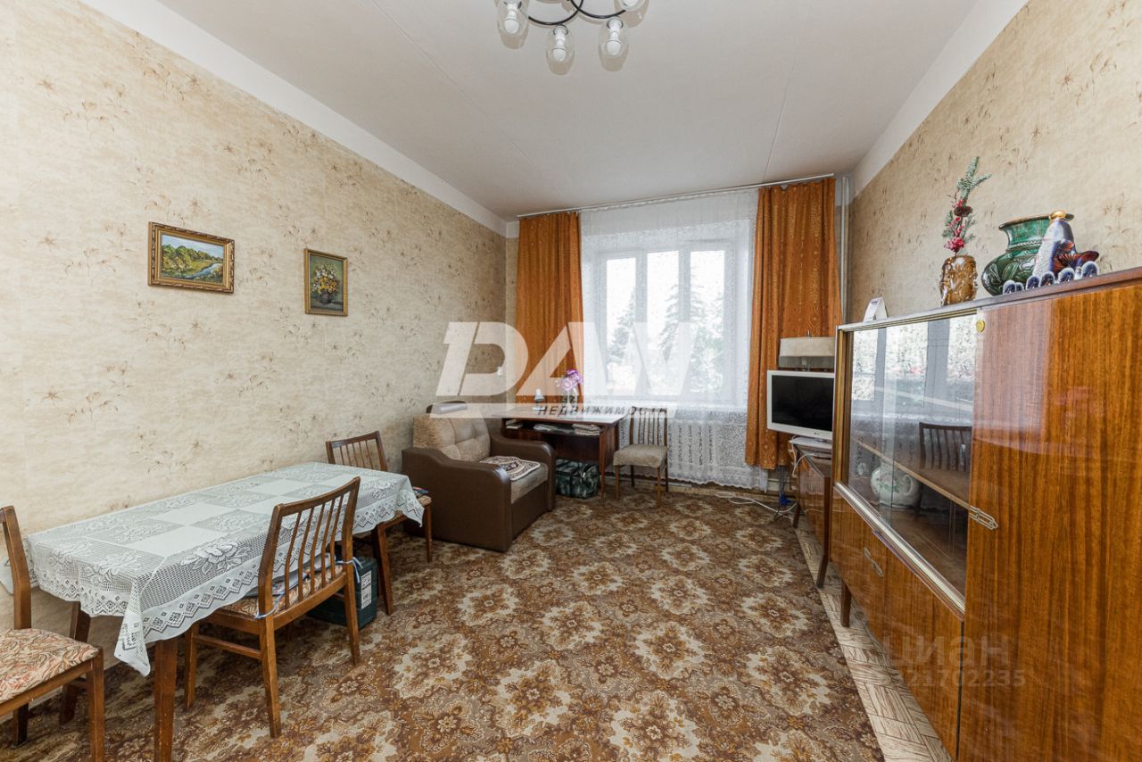 Дом сталинский, пятиэтажный, каменный с железобетонными перекрытиями, высота потолка 3.3 м. Квартира расположена на втором этаже. Площадь квартиры 57 кв.м. Балкона нет. Планировка самая удачная - по типу 97 серии: две прямоугольные комнаты на разные стороны, гостиная 23 кв.м. и спальня 14 кв.м. Обе комнаты и кухня площадью 9 кв.м. раздельные. Санузел раздельный. Квартира просторная, большой коридор, красивый вид из окон. Везде установлены евроокна. Состояние простое, квартира чистая, уютная. Хорошие соседи.