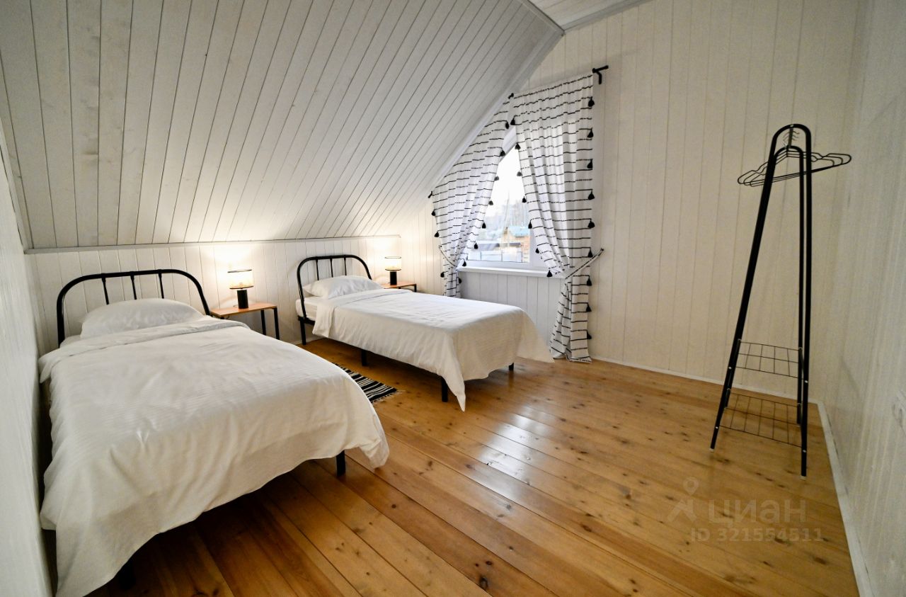 Четыре отдельные спальни и кухня-гостиная с раскладным диваном Количество спальных мест: 10 Два санузла (на 1 и 2 этаже) Душевая кабина Кондиционеры Высокоскоростной интернет Smart TV Умная колонка Sber Терраса с зоной отдыха Отдельно стоящая баня на дровах Мангальная зона Парковка на 3 автомобиля на участке и на 2 авто за воротами Постельное белье и полотенца