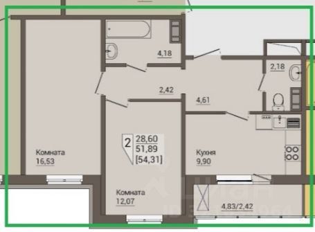Продается уютная 2-комнатная квартира в новом доме, расположенном по адресу: Челябинск, Краснопольский проспект, 24. Общая площадь квартиры составляет 54,3 кв. м, жилая площадь — 29 кв. м, а кухня — 10 кв. м. Квартира находится на 8 этаже 18-этажного панельного дома, построенного в 2024 году. Высота потолков 2,7 метра, что создает ощущение простора.