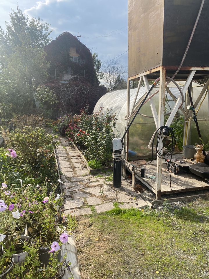 дача в черте города 40м2,на участке имеется место для парковок,для отдыха,бассейн,скважина ,бак под воду,баня,колодец ,яблони,груши,малина,жимолость,крыжовник, виноград,,смородина, вишня,розы и высокие грядки,туалет,в доме на 1 этаже кухня и спальня,2этаж комната,сад в конце центральной улице