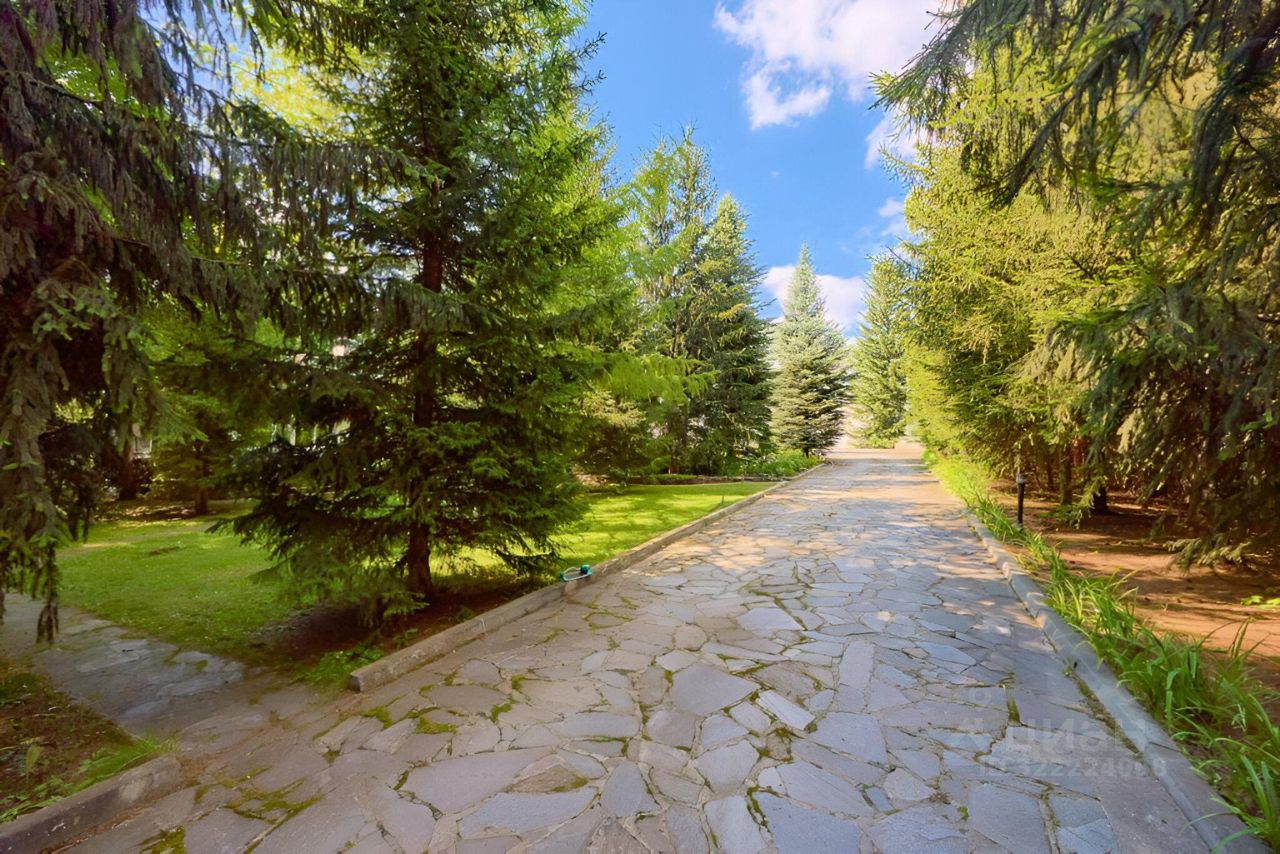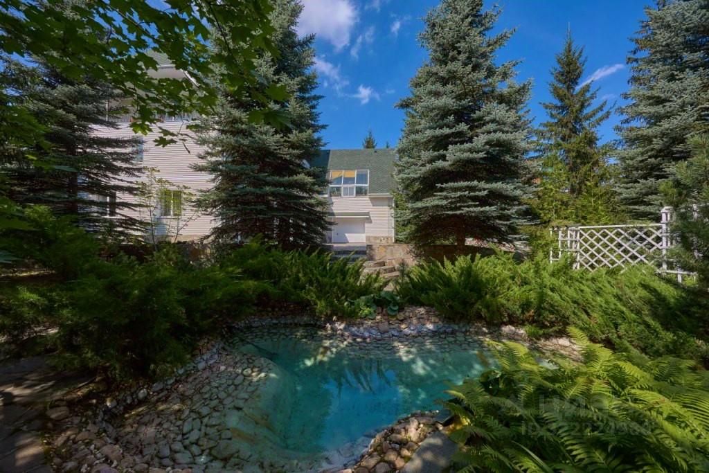 Территория с ландшафтным дизайном, дорожки вымощены камнем, хвойные деревья, лужайки, место для отдыха с живописным прудиком.