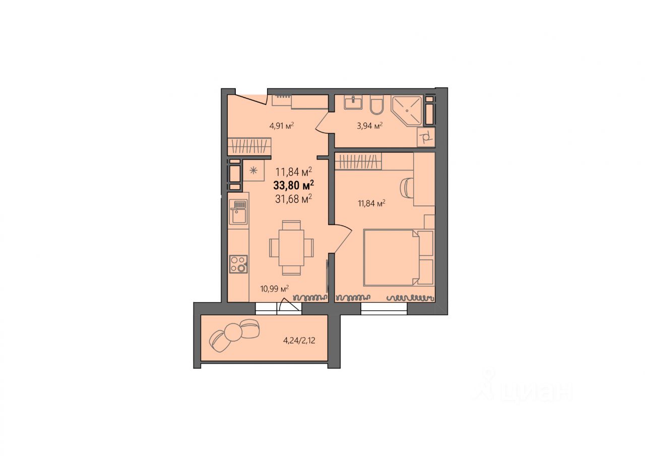 продам 1-к, Светлая (мкр Белый хутор), 3 стр.3 380 000 ₽
