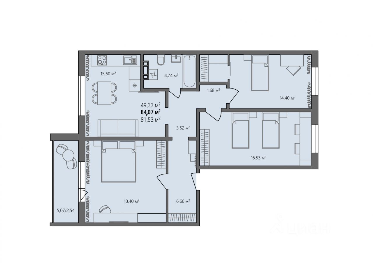 продам 3-к, Светлая (мкр Белый хутор), 3 стр.8 196 825 ₽