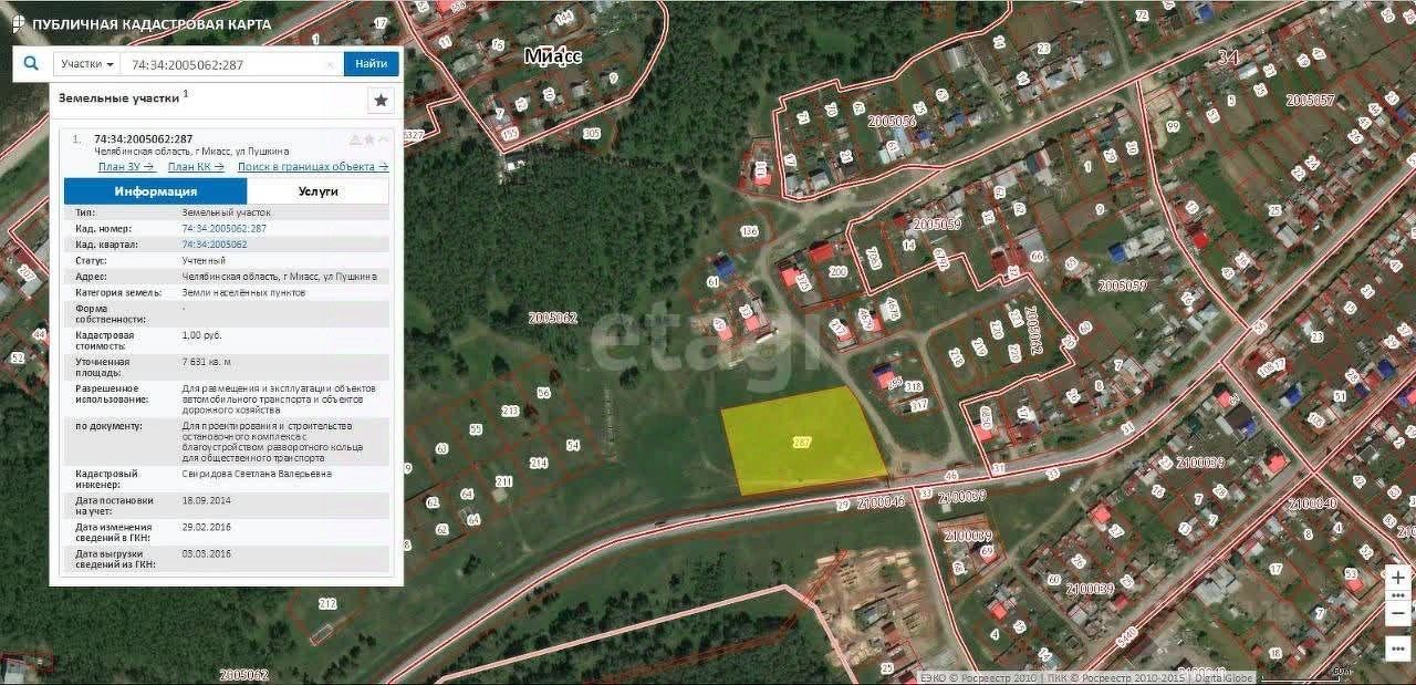 Продается редкий земельный участок в городе Миасс на выезде из города в сторону трассы М5. Этот участок площадью 7631 кв.м. (76,3 сотки, 0,76 га) расположен по ул. Пушкина , и его приобретение дает хорошие возможности для вашего успешного бизнеса.