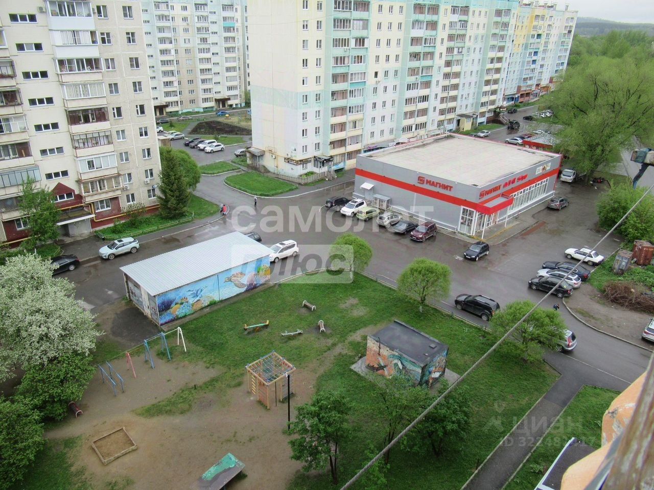 Перед домом детская площадка, парковка.
