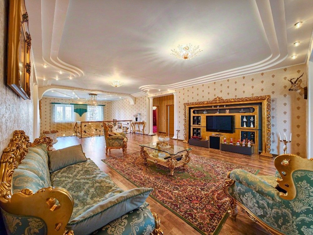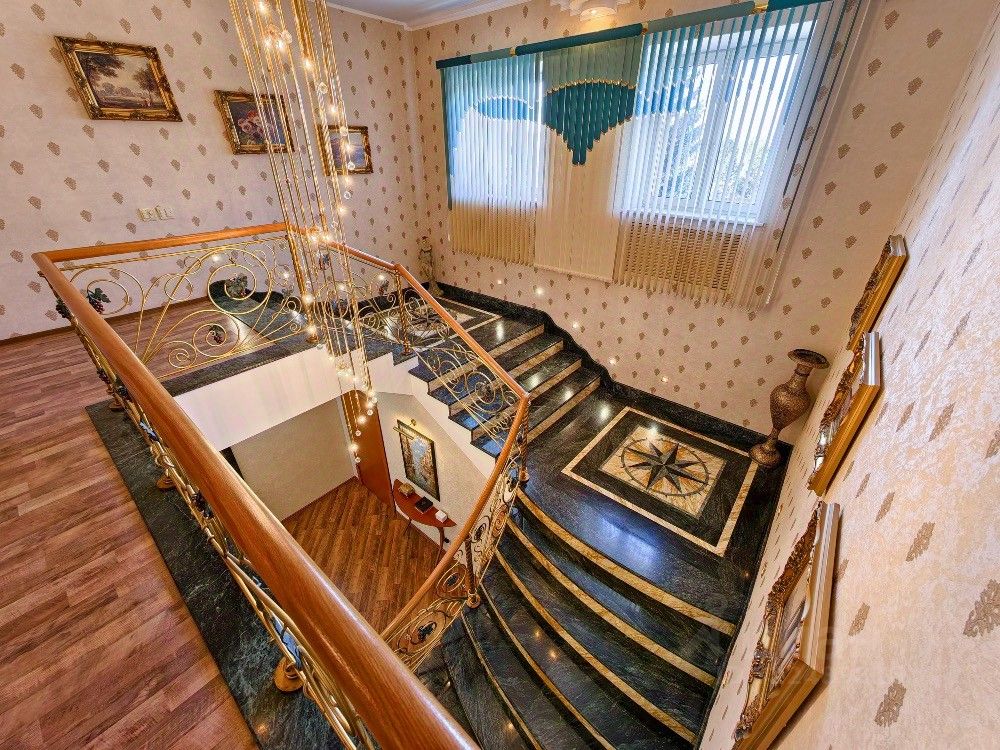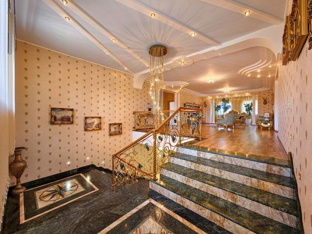 - Площадь всех строений около 1000 м2 - 37 соток - 2 гаража - 3 площадки для парковки - Квартира охраны или для гостей - Во дворе (баня, летний дом, склад-мастерская, сарай, теплица) - В доме (3 спальни, кабинет, гостиная, кухня столовая, 2 холла, кладовая, 5 с/у, сауна и бассейн, инженерная комната, погреб, зимний сад, прачечная)