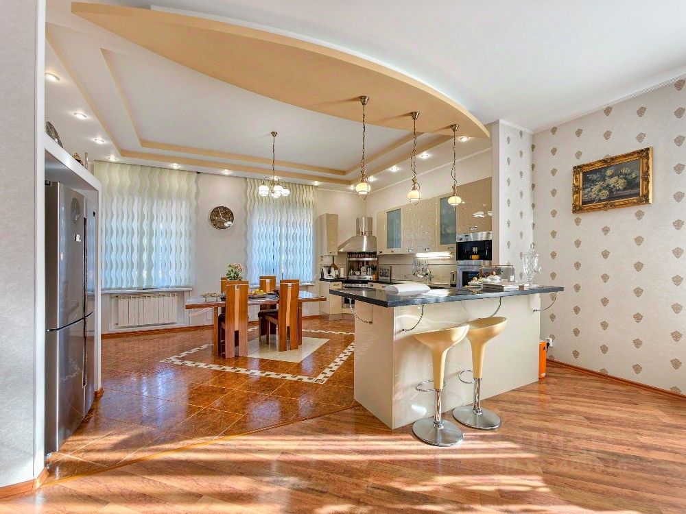 Также отмечу, что в доме очень много света, естественного и принудительного. Все потолки многоуровневые. С различными узорами повторяющими стиль помещений.