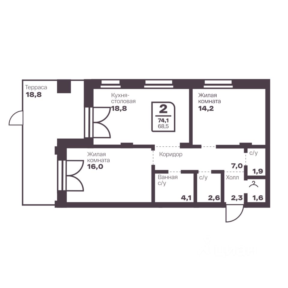 Общая площадь68,5 м2