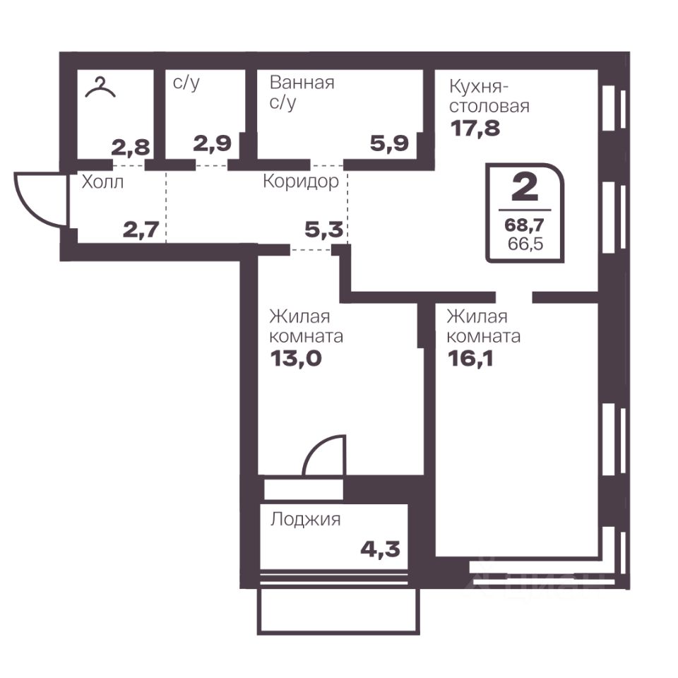 Общая площадь66,5 м2