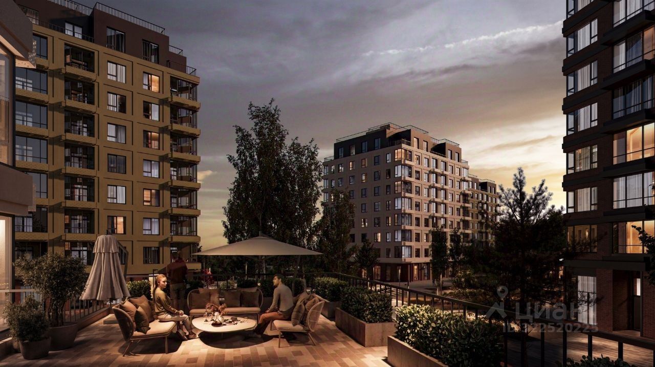 В проекте — квартиры с террасами, где можно отдыхать, устраивать мини-пикники или просто наслаждаться открытым воздухом с видом на зелёный парк.