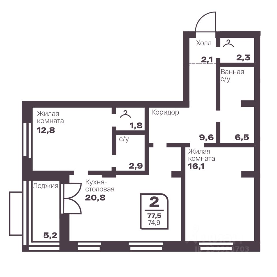 Общая площадь74,9 м2