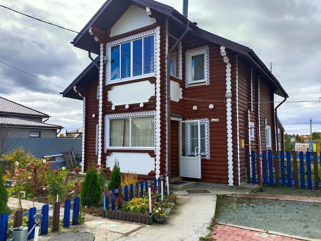 ПОСТРОЕН- фундамент: бетонный ленточный, основное здание— оцилиндрованное бревно одинакового диаметра. Бревно прошло все циклы обработки и сушки. Перекрытия деревянные, также из бревна. Крыша мансардного типа, утеплена, покрыта метало черепицей.
