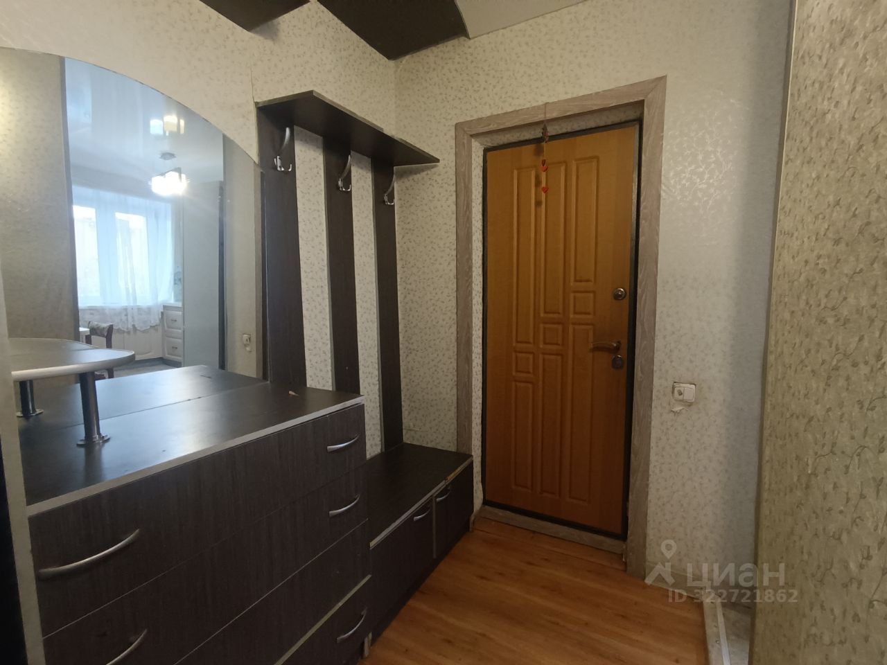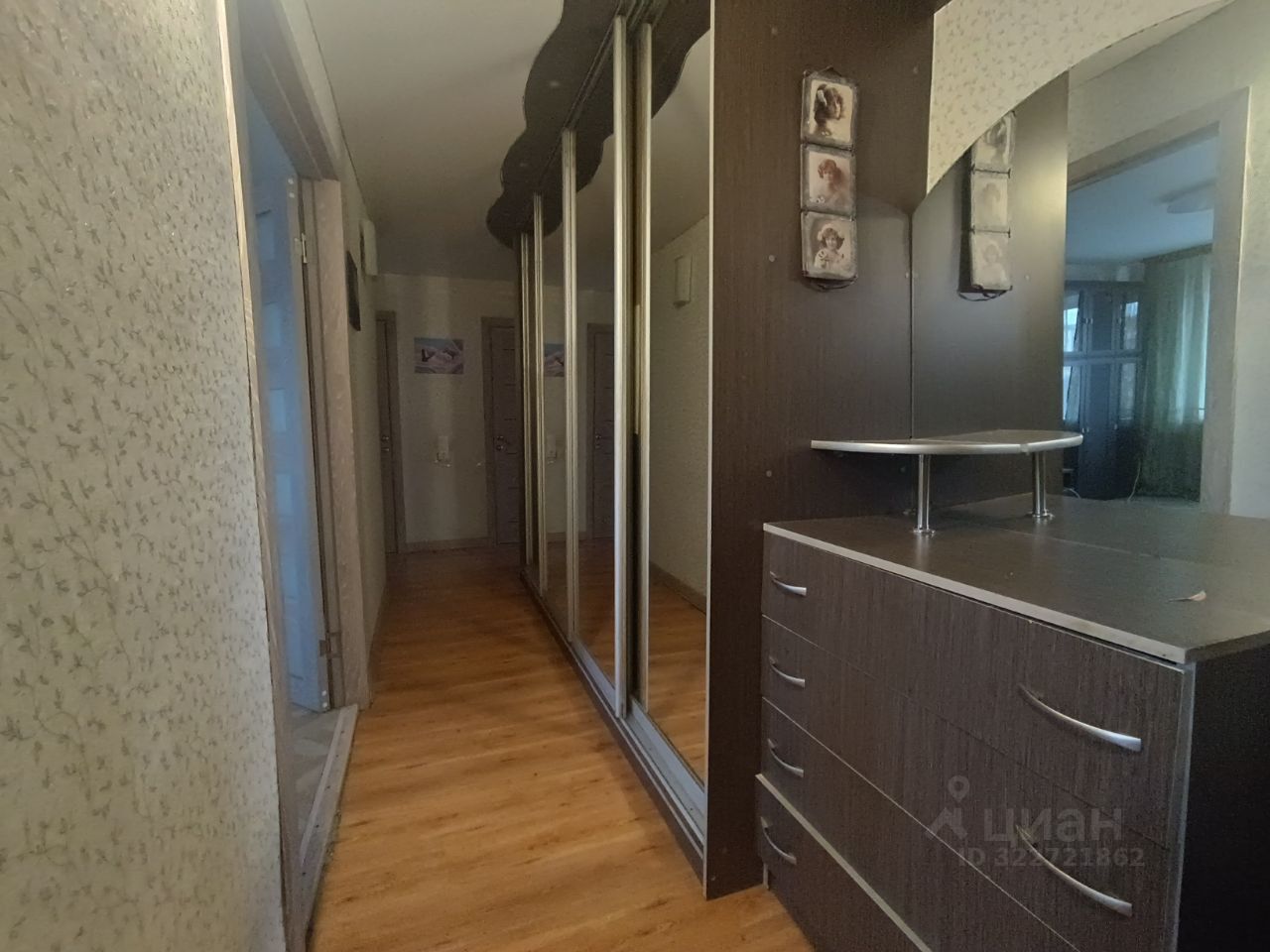 -просторный коридор, в котором расположился вместительный встроенный шкаф с прихожей.