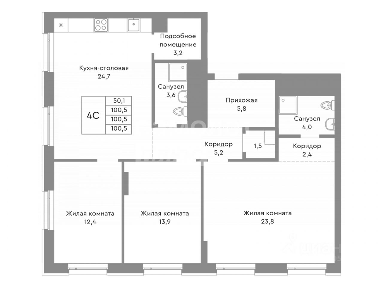 Продаётся просторная 4-комнатная квартира в современном жилом комплексе! Отличное расположение — комфортный район с развитой инфраструктурой: рядом школы, детские сады, магазины, кафе, остановки и прогулочные зоны. О квартире: — Общая площадь 100,5 м² — Кухня-гостиная 24,7 м² — сердце квартиры, где удобно и готовить, и собираться всей семьёй. — Три отдельные спальни — для родителей и детей, с большими окнами и правильной геометрией комнат. — Два санузла — удобно для большой семьи. — Есть подсобное помещение — место для хранения, которое можно использовать как прачечную или гардеробную. Планировка продумана до мелочей: просторная прихожая, два коридора, отдельная зона приватности для спален. Преимущества: — современная технология строительства, — большие окна, много света, — можно реализовать дизайнерский проект (варианты визуализаций готовы), — чистовая или предчистовая отделка (указать нужное), — подходит под все ипотечные программы, включая семейную 6% и без первоначального взноса. Подберу оптимальные условия покупки, помогу рассчитать ипотеку и пройти одобрение без визитов в банк. Звоните — расскажу подробности и покажу квартиру в удобное время!