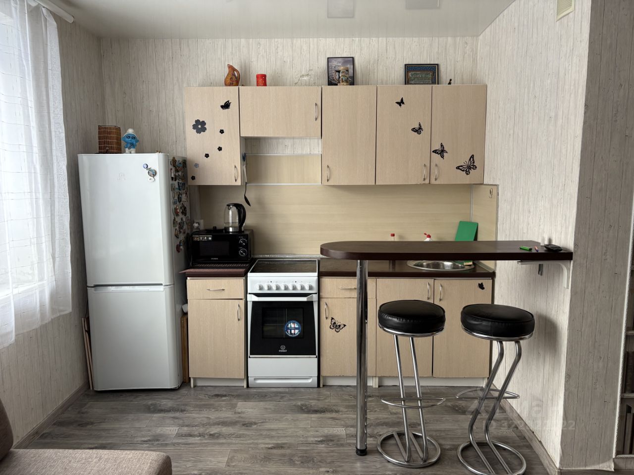 Раскладной диван с атаманкой. Кухонный гарнитур, чайник, холодильник, микроволновая печь, плита с духовым шкафом. Большой платяной шкаф. Стиральная машина. Телевизор с кабельным от Интерсвязи. Роутер есть, можете подключить интернет, но самостоятельно на свой договор.