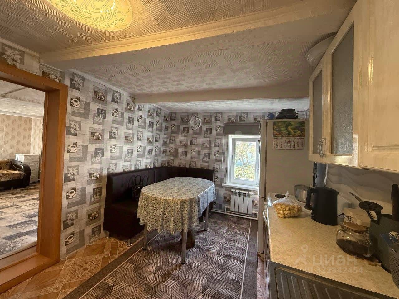 Дом рубленый, бревенчатый, снаружи отделан деревянной рейкой. Общая площадь 37,7 кв.м. Дом состоит из кухни и двух комнат. Все окна пластиковые. На стенах наклеены обои, на потолке потолочная плитка. Отопление газовое. Установлен газовый котел, радиаторы отопления во всех комнатах. Вода в доме, заведена из колодца. Установлена раковина, подключена стиральная машина и водонагреватель. Удобства на улице.