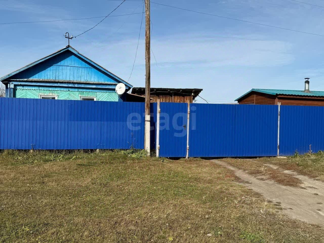 Подъезд - асфальтированная дорога. Земельный участок 11, 27 соток. Огорожен с одной стороны сеткой, с другой деревянным забором, центральная часть, выходящая на улицу, - профнастилом. Ворота тоже из профнастила. Есть новая баня с террасой размером 8х5. Капитальный сарай из шпал. Курятник.