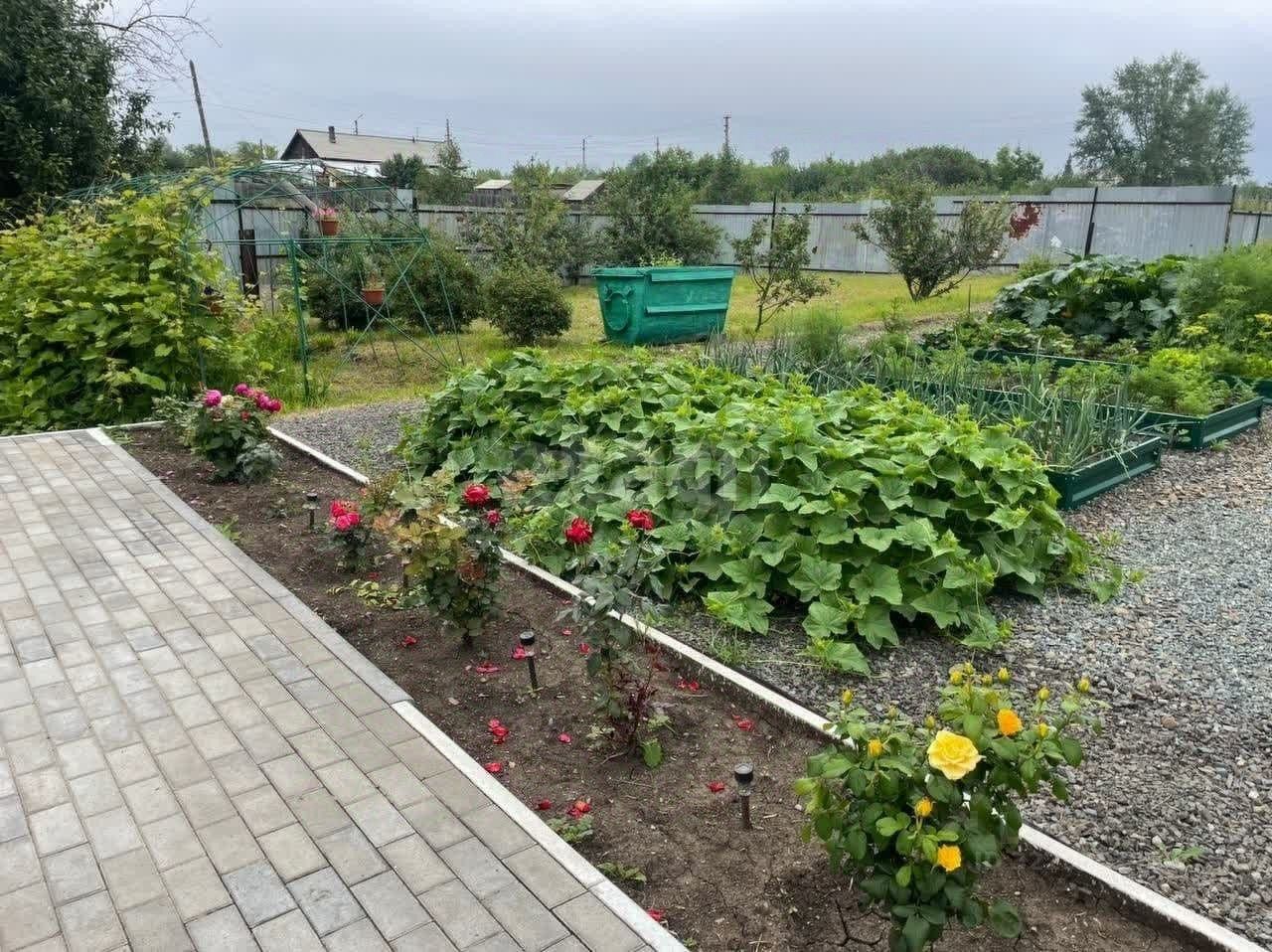 Участок разработан- есть беседка, баня и сауна, два гаража, летняя кухня, многочисленные постройки для ведения личного подсобного хозяйства.