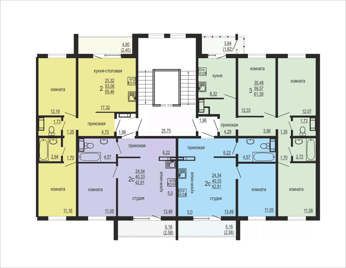 Общая площадь42,91 м2