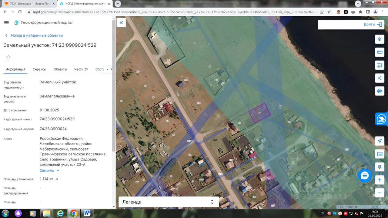 Данные получены с сайта ГИС Торги. Земельный участок из земель населенных пунктов, с кадастровым номером 74:23:0909024:529, расположенный по адресу: Российская Федерация, Челябинская область, Чебаркульский район, Травниковское сельское поселение, с.Травники, ул.Садовая, 33-А, вид разрешенного использования: для ведения личного подсобного хозяйства, площадью 1114 кв.м. В использовании земельного участка установлены ограничения: участок полностью находится в границах водоохранной зоны и прибрежной защитной полосы пруда без названия в с.Травники в пределах Чебаркульского муниципального района Челябинской области, часть участка входит в охранную зону электрических сетей, ограничения установлены постановлением Правительства РФ от 24.02.2009г.