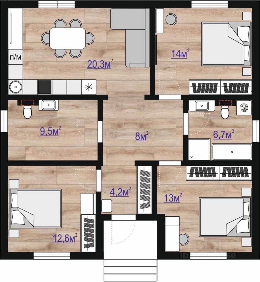 Общая площадь95 м2