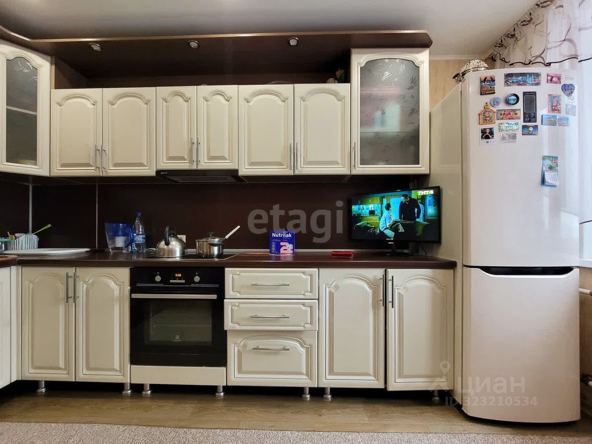 Остаётся красивый кухонный гарнитур, вместительный шкаф купе.