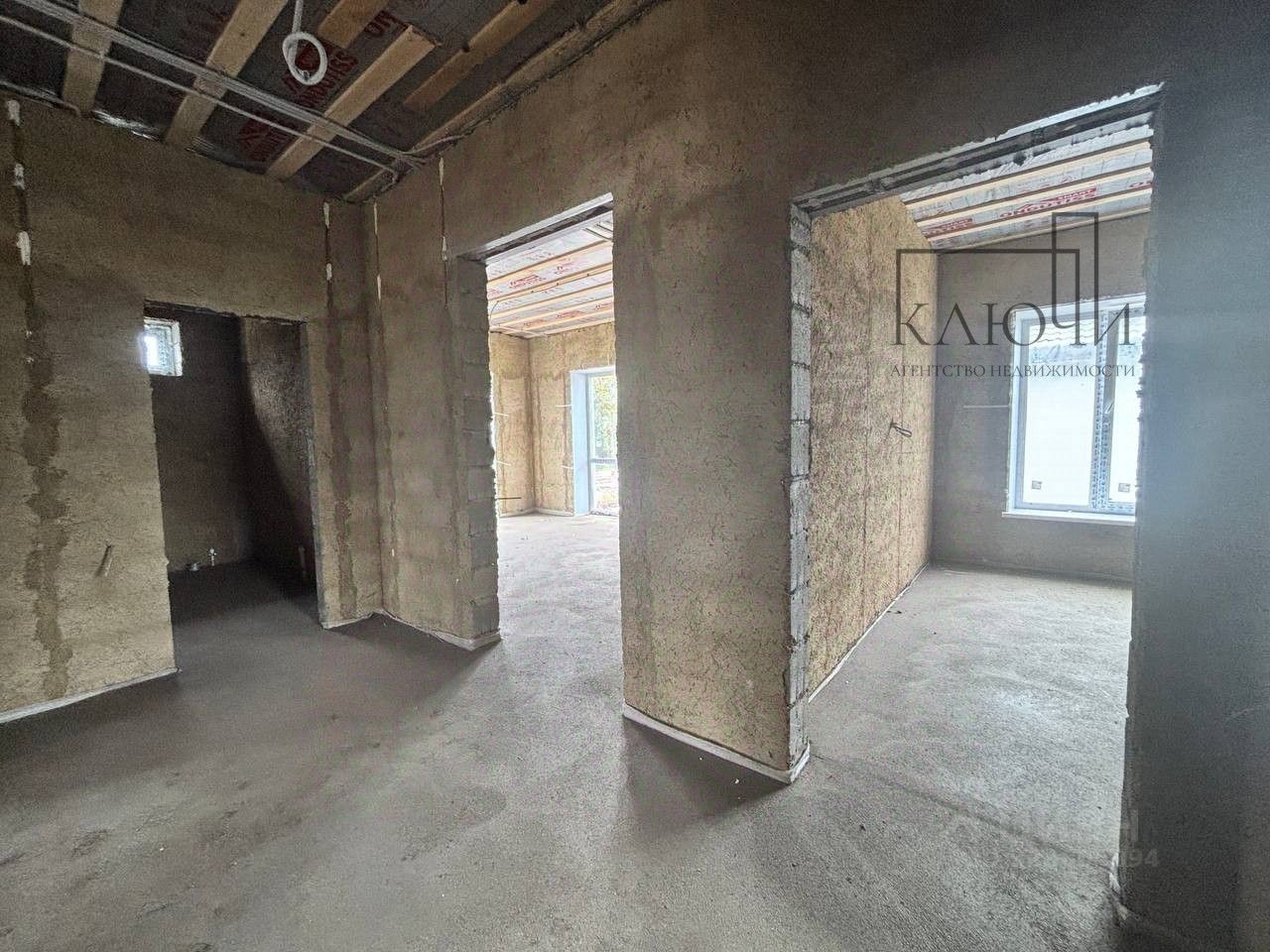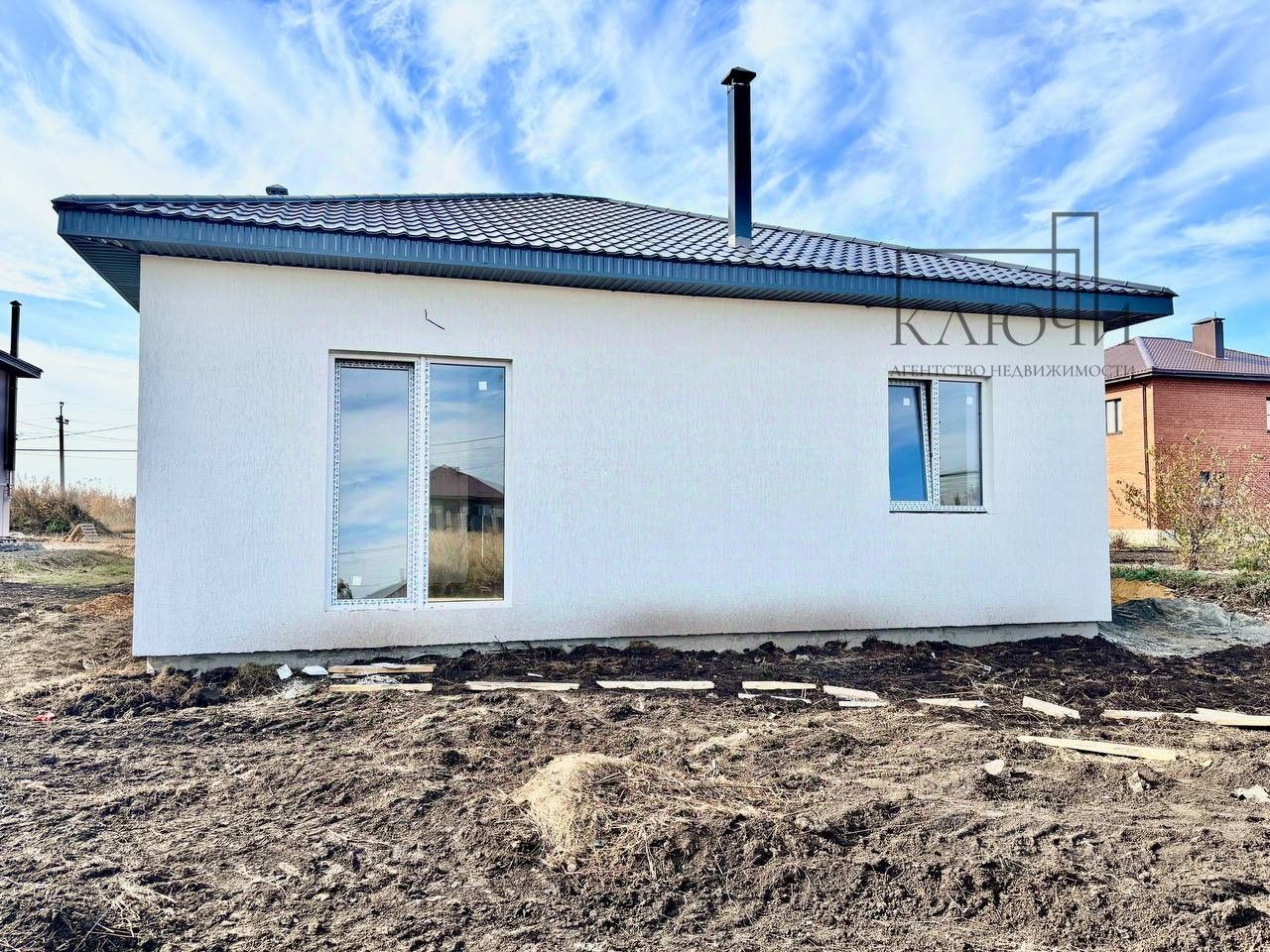 Планировка: 3 спальных комнаты, кухня-гостиная с выходом на террасу, коммуникации: газ, свет, вода-скважина, канализация-септик объект подходит под льготную ипотеку 6% Коммуникации: Вода - скважина, канализация - выгребная яма, газ будет заведен в дом, электричество.