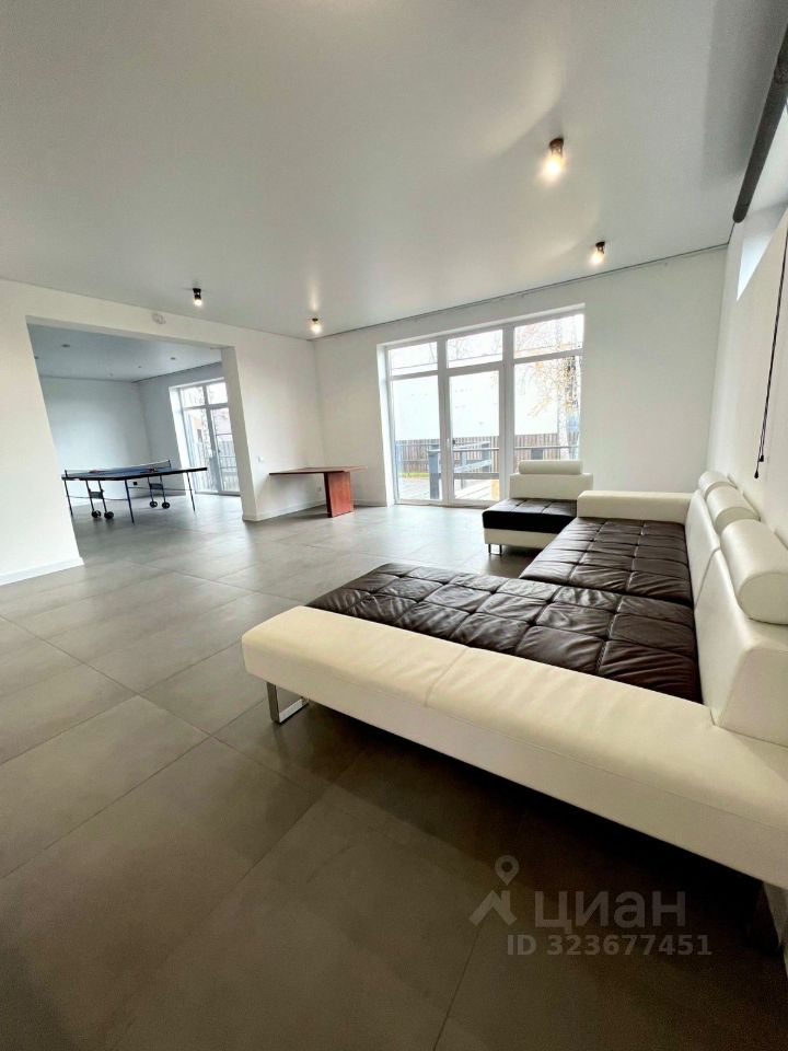 просторная гостиная с понарамными окнами с выходом на веранду,