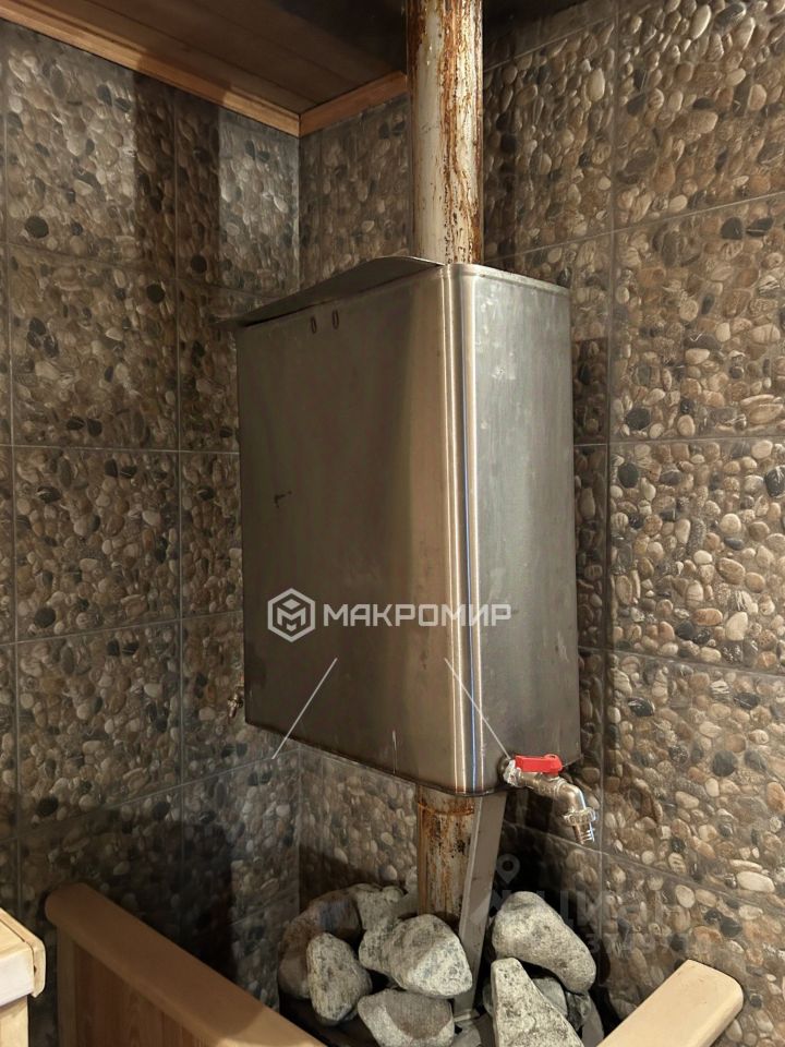 Дополнительные постройки: - Баня: 28 м2, 4м x 7м, три отделения, стены из газоблока ''Инси'', облицовка природным камнем ''Плетняк''. Внутренняя отделка лиственницей и липой. Полностью готова и работает. - Гараж: 41м2, на две машины, заливной ленточный фундамент, стены из пеноблока, облицовка природным камнем ''Плетняк''. Смотровая яма, септик ''Топас'',. - Беседка: 12 кв.м., новый пол из шпунта лиственницы, крыша из материала ''Шинглаз''