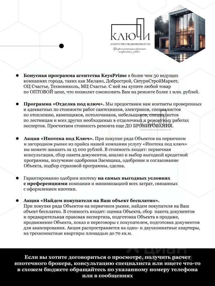 Дом продается в пред чистовой отделке. Можно в ипотеку : Примерный расчет ипотеки Цена 8 890 000 ? Ставка 6 % Платёж 35 973 ? Если вы хотите узнать подробности по лоту или рассмотреть другие варианты недвижимости в данной локации позвоните нам или напишите в сообщения эксперту и получите подборку Лотов.