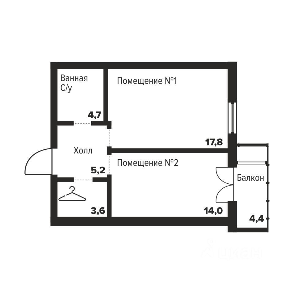 Общая площадь45,3 м2