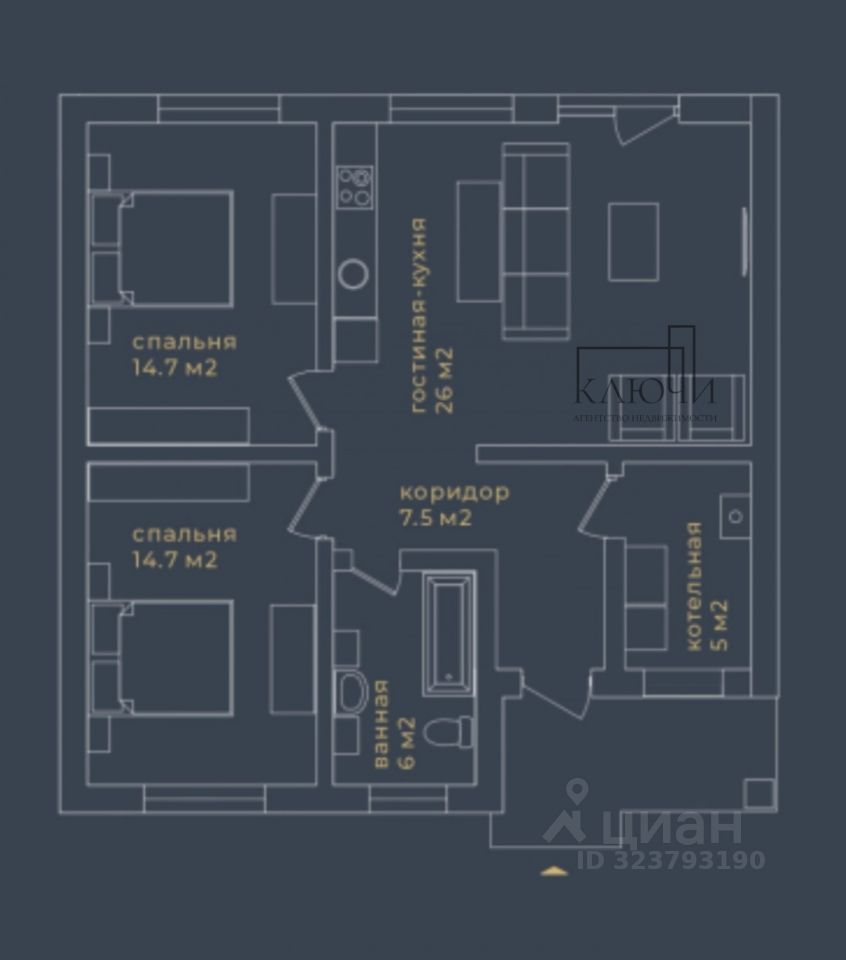 ОБ ОБЪЕКТЕ: 2 спальных комнаты кухня-гостиная с выходом на террасу ванная комната + санузел потолки 3 метра