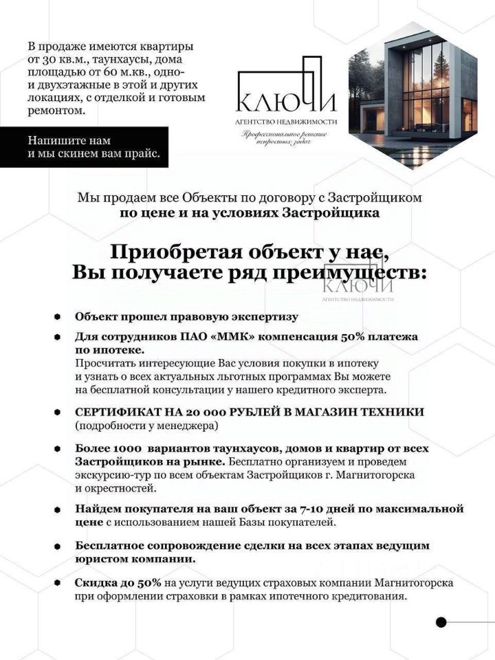 Дом продается в пред чистовой отделке. Можно в ипотеку : Примерный расчет ипотеки Цена 8 890 000 ? Ставка 6 % Платёж 35 973 ? Если вы хотите узнать подробности по лоту или рассмотреть другие варианты недвижимости в данной локации позвоните нам или напишите в сообщения эксперту и получите подборку Лотов.