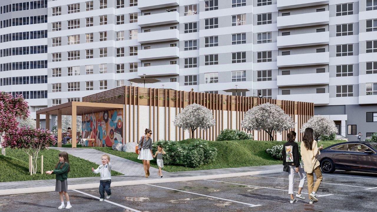 В доме будет располагаться Соседский центр - место общего пользования для жителей дома с коворкингом, детской и спортивной зоной. Есть кладовые. Рядом с комплексом будет проходить городская набережная.