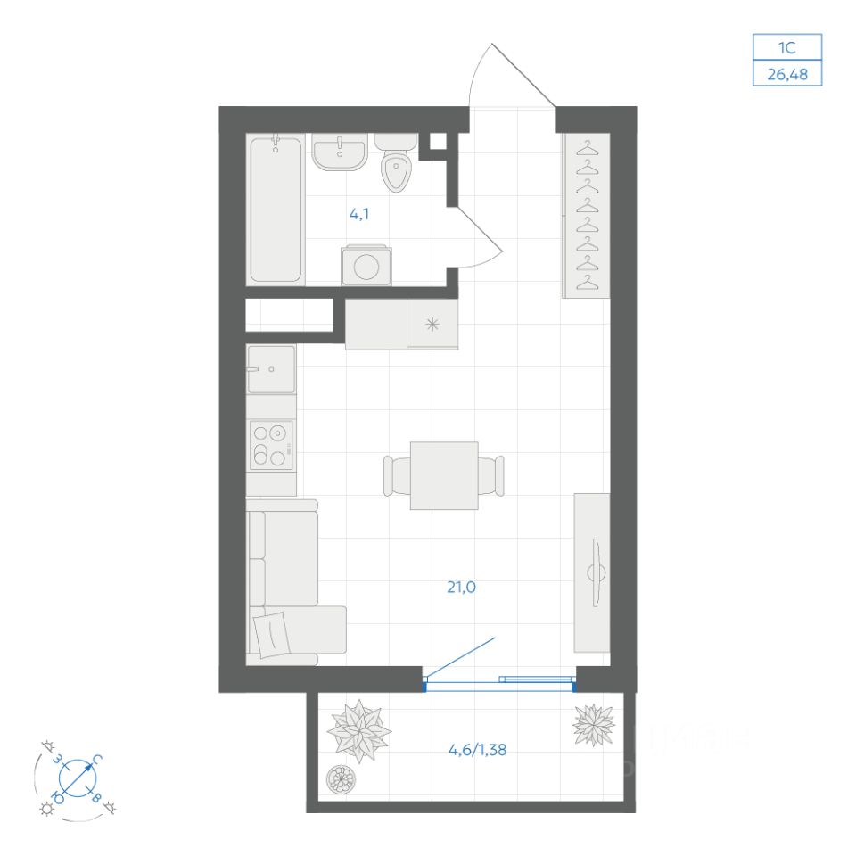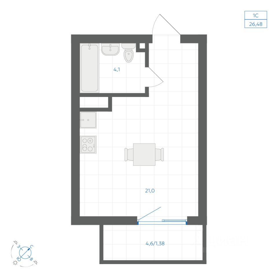 Общая площадь26,48 м2