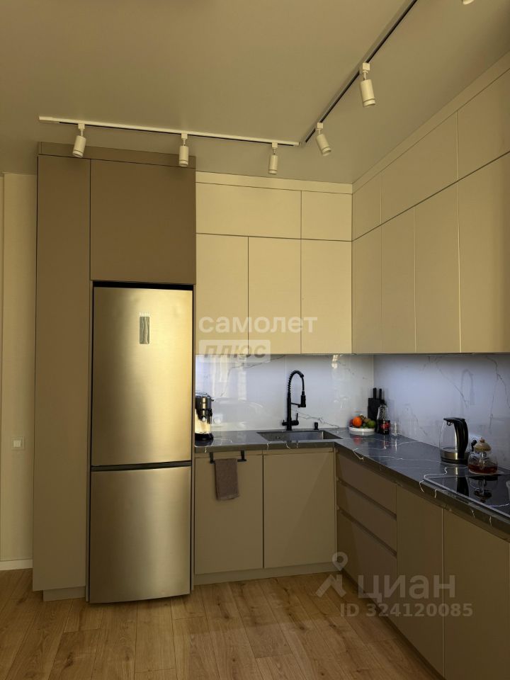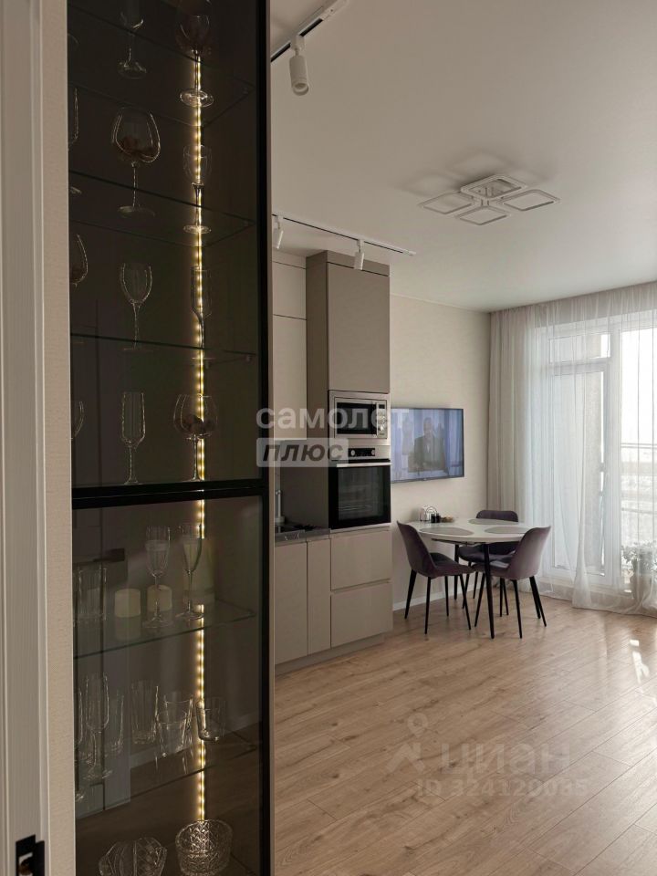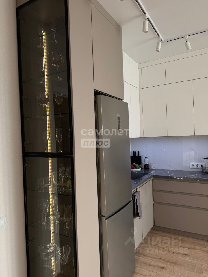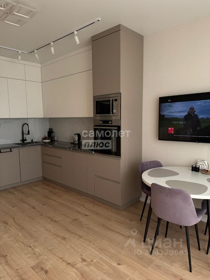 Квартира с дизайнерским ремонтом, включает просторную кухню-гостиную с функциональным кухонным гарнитуром и встроенной бытовой техникой: микроволновая печь, духовой шкаф, варочная панель и посудомоечная машина.