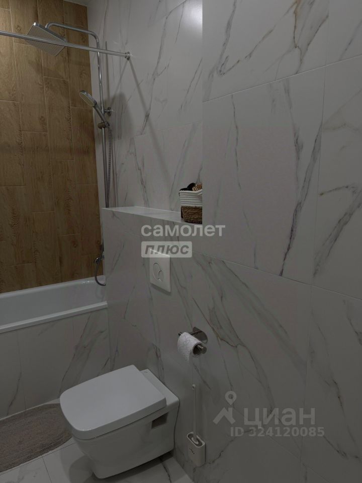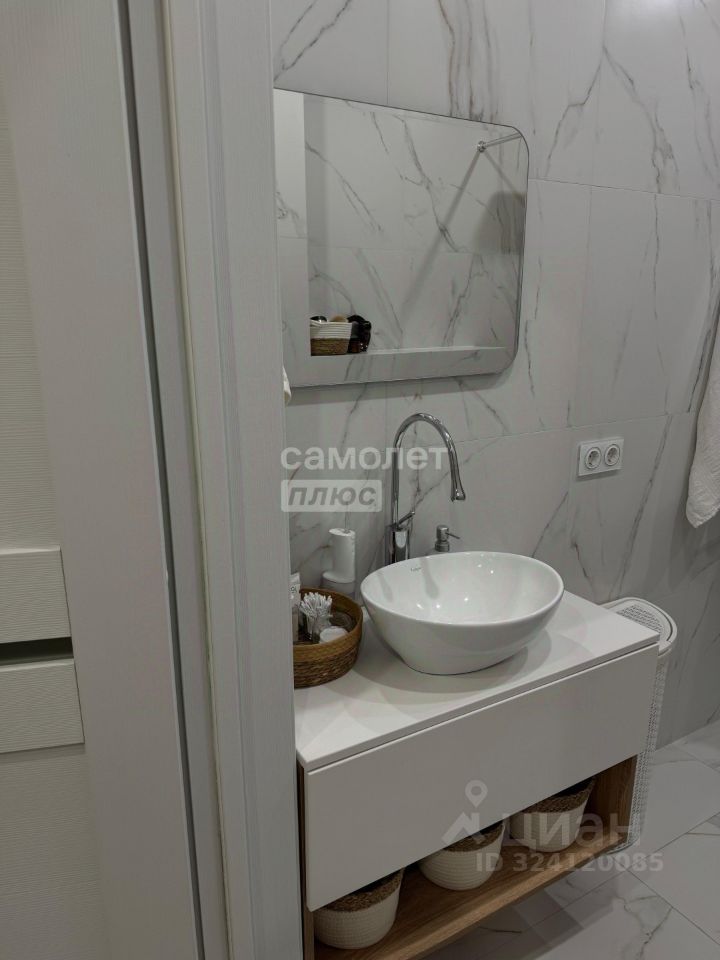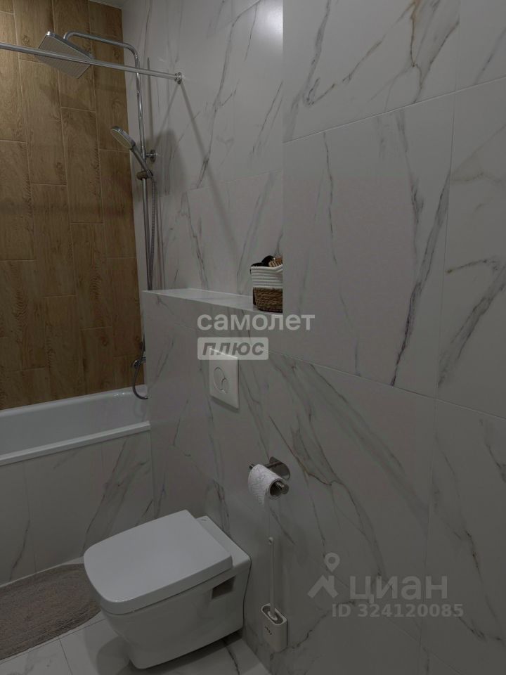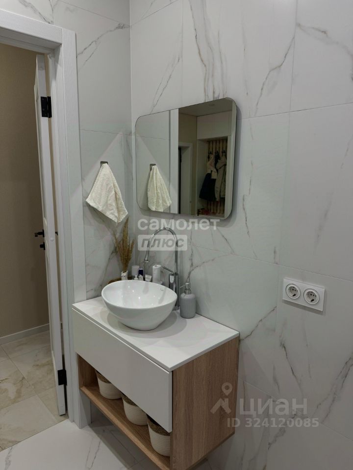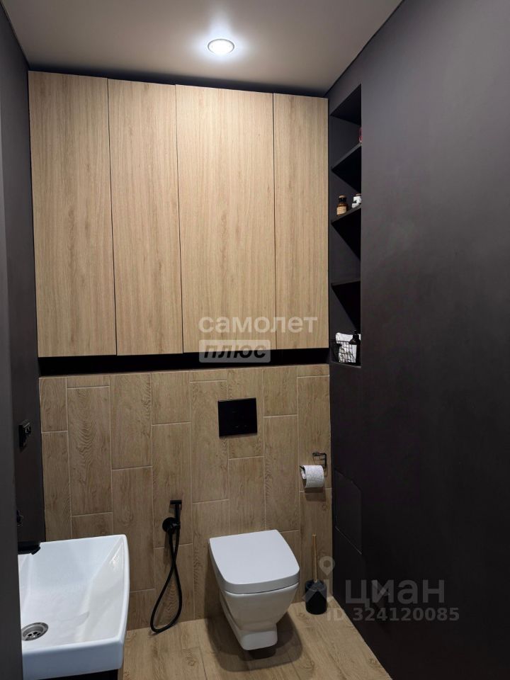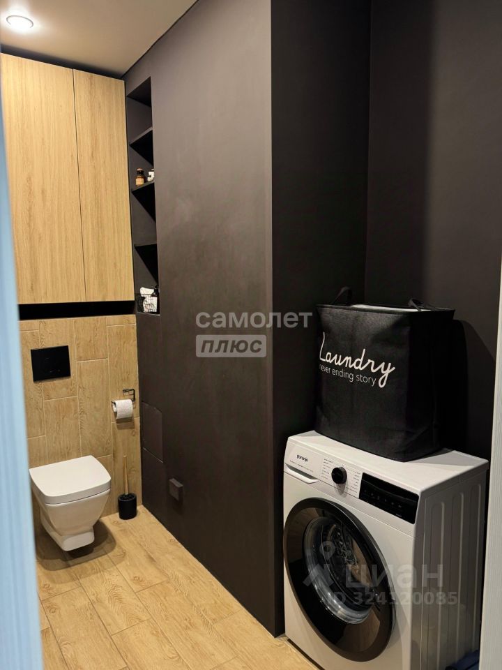 В квартире два санузла, отделанных керамогранитом. Пол в прихожей и санузлах с подогревом, в прихожей и гостиной - керамогранит, в комнатах - ламинат высокого класса. Также имеется вместительная, оборудованная гардеробная.