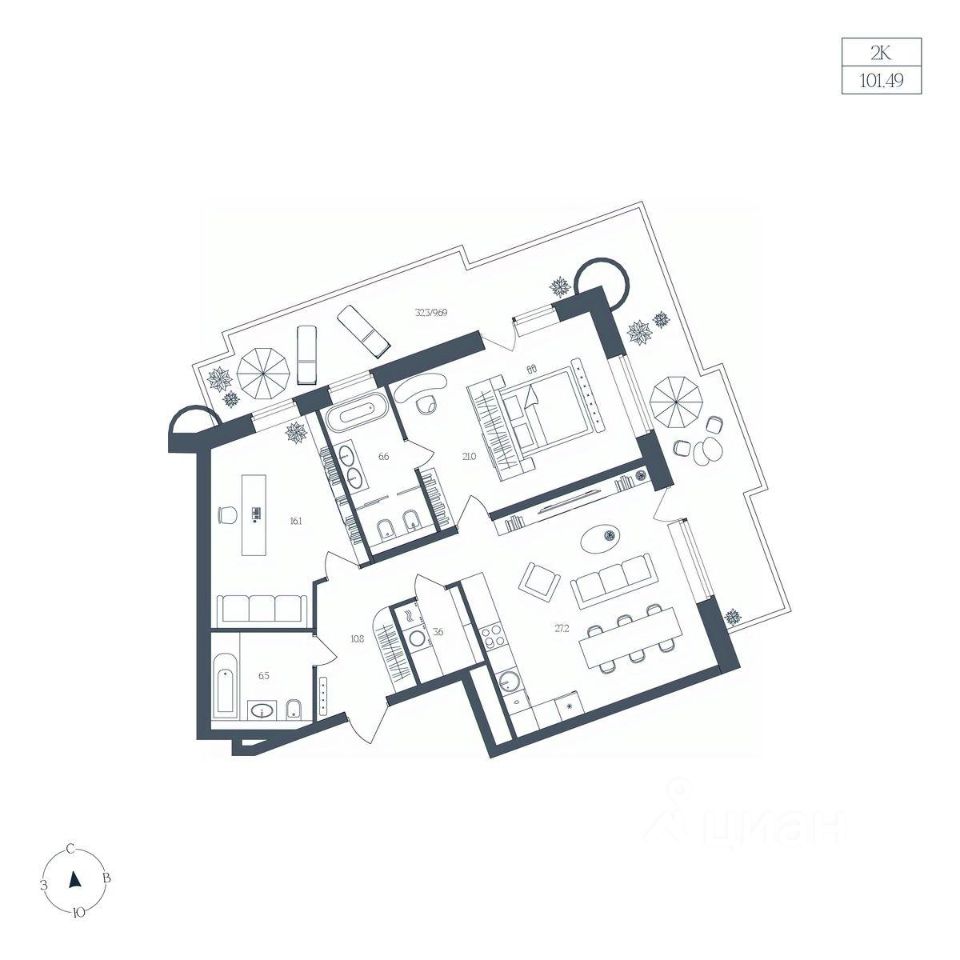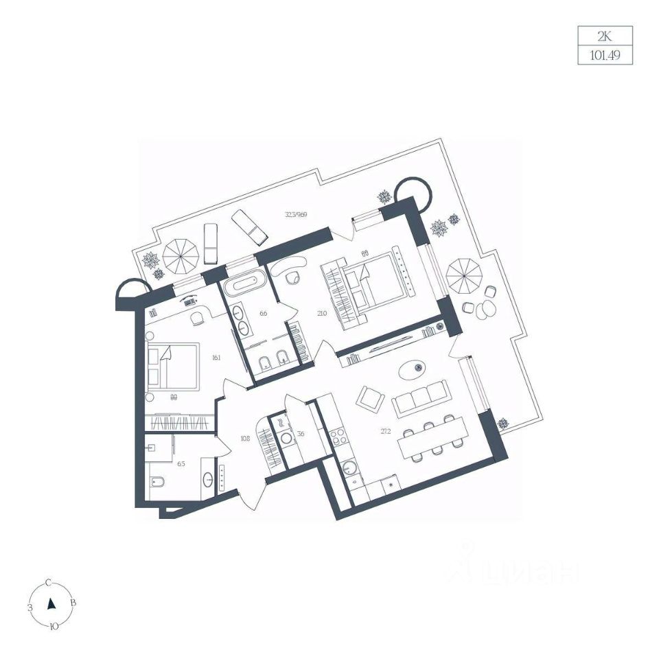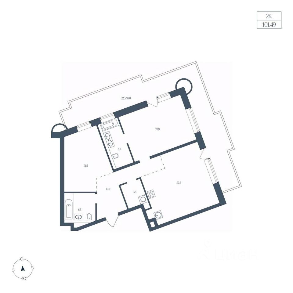 Общая площадь101,49 м2