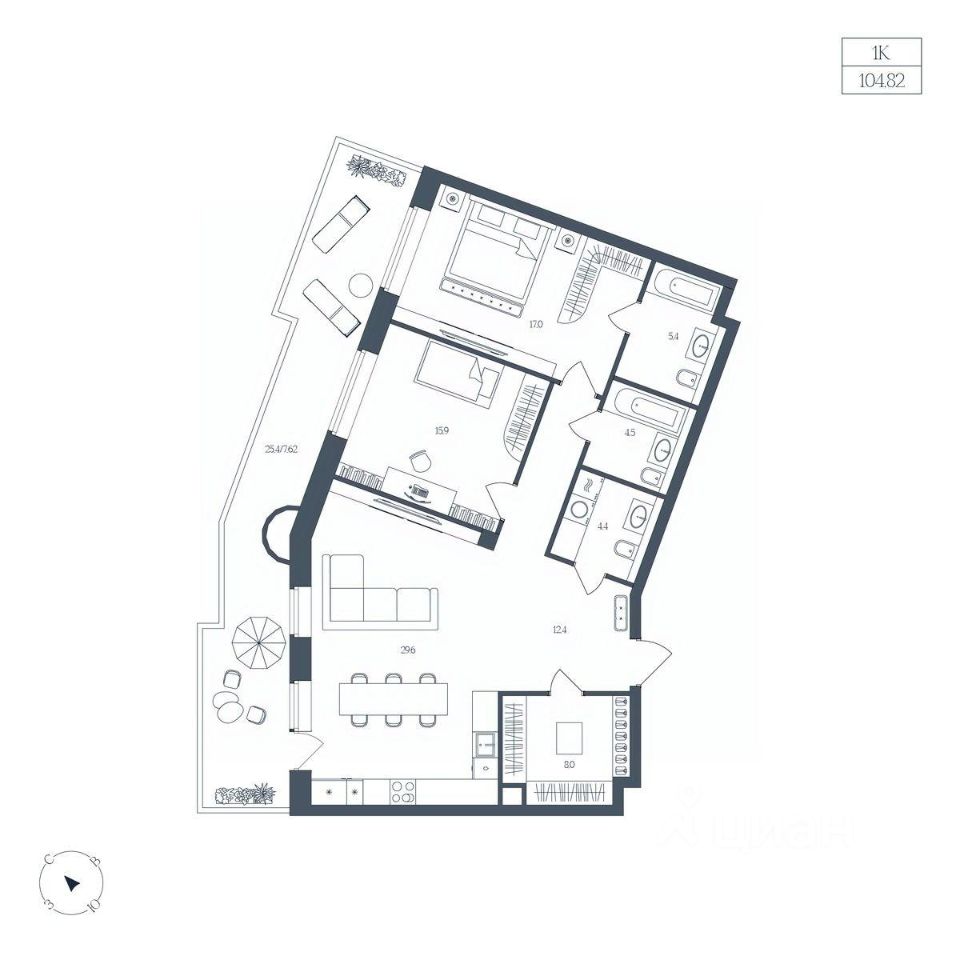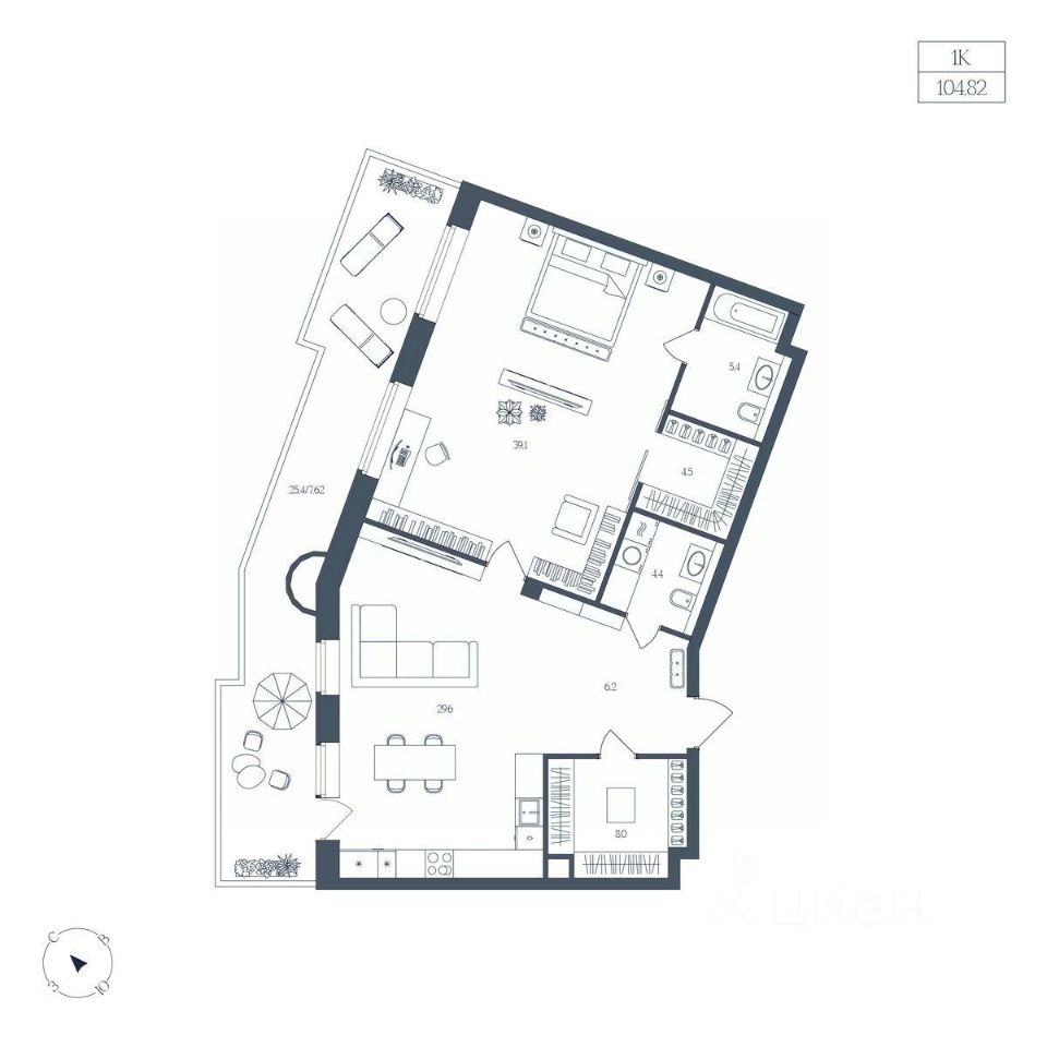 Общая площадь104,82 м2