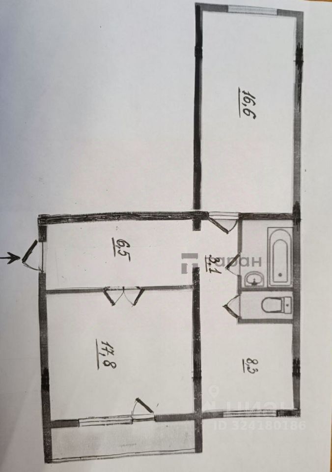 Комнаты раздельные: 17,8 и 16,6 м2, кухня 8,3 м2.Окна выходят во двор и на улицу. Санузел раздельный. Остекленная и утепленная лоджия.
