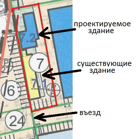 Согласно новому проекту планировки территории возможно увеличение этажности (до 3-х) и площади (до 942 кв.м.). Также допускается строительство отдельного здания (3 этажа и 384 кв.м.