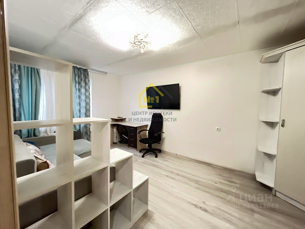 Комната светлая и уютная с диваном и вместительным встроенным шкафом, очень удобный .