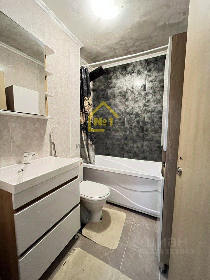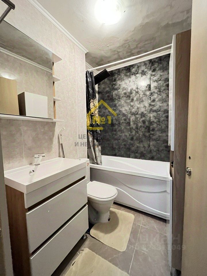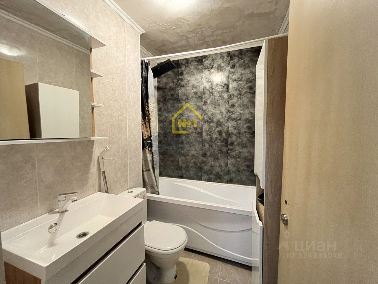 Ванна комната с ремонтом и установлена ванна с душевой системой , умывальник и туалет.