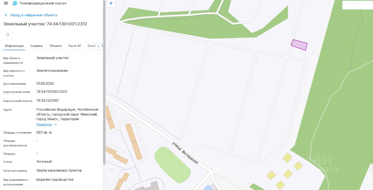 Земельный участок, общей площадью 623 кв.м., с кадастровым номером: 74:34:1301001:2312, расположенный по адресу: Челябинская обл., Миасский городской округ, г. Миасс, территория Коллективный сад Автомобиль, земельный участок 486, разрешенное использование ведение садоводства, категория земель: земли населенных пунктов.