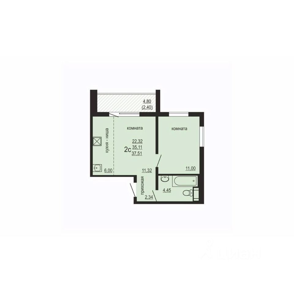 Общая площадь37,51 м2